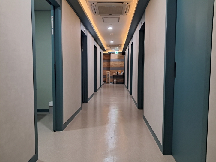39평, 1인실 7개, 공동샤워장2개. 직원 휴게실1